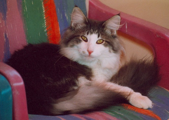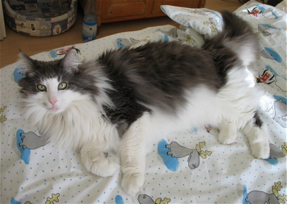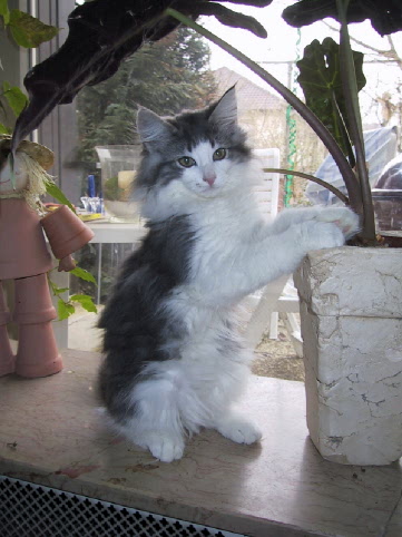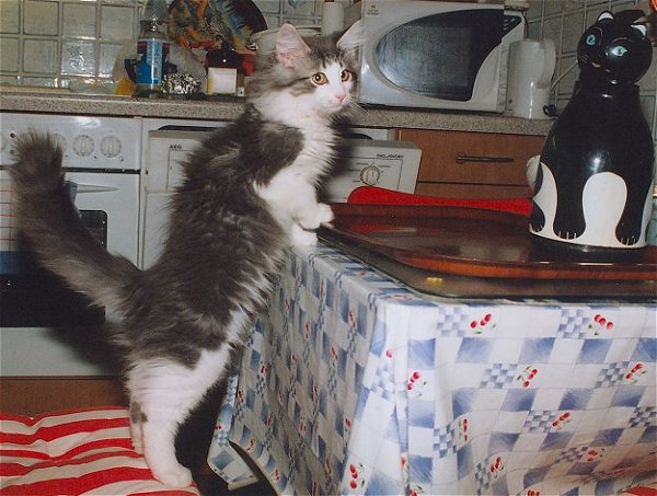 selbstbewußt. Er liebt es in unserem Bett zu tollen......und