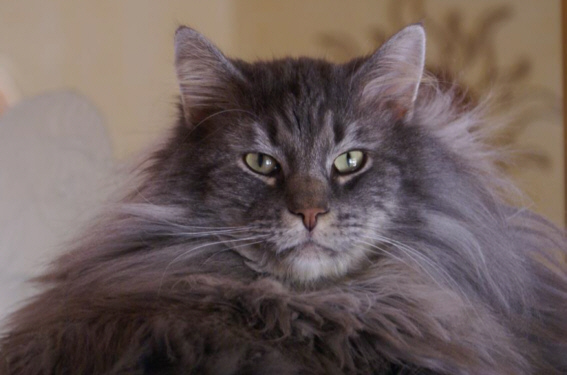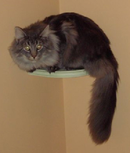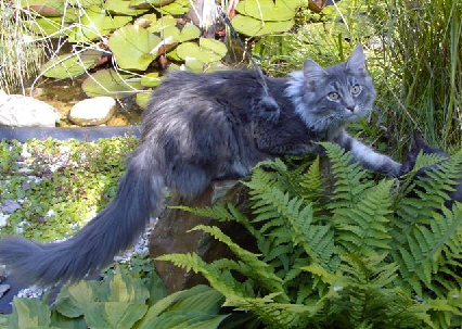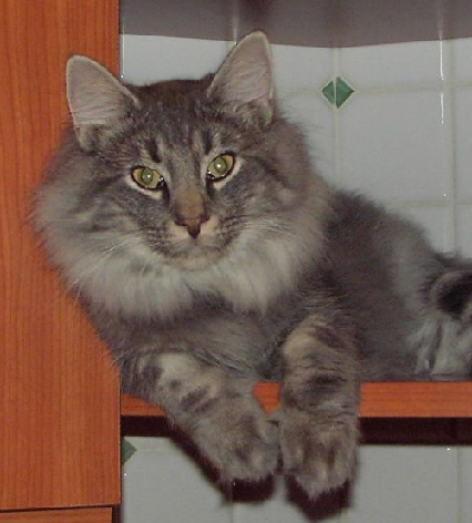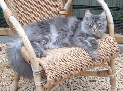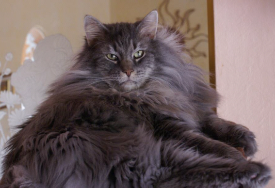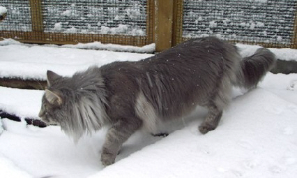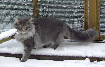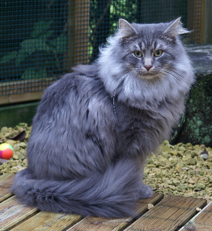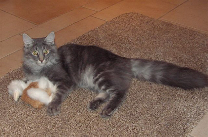 hat einen langen Körper, dicke Pfoten und einen sehr langen