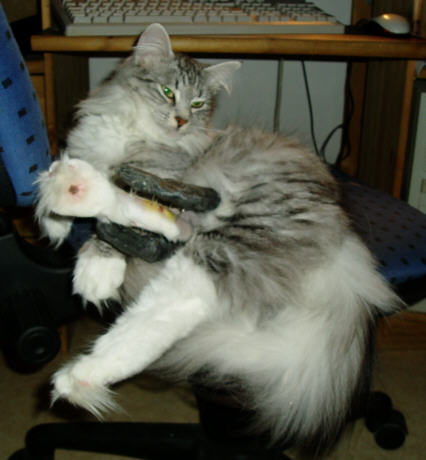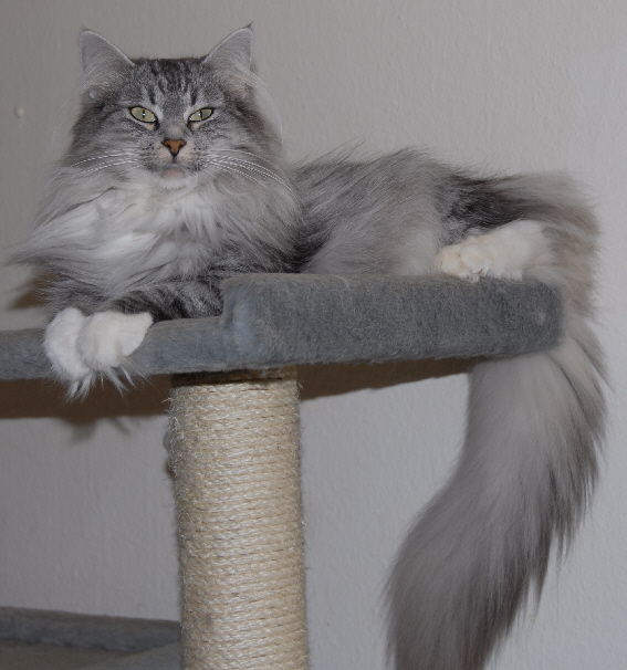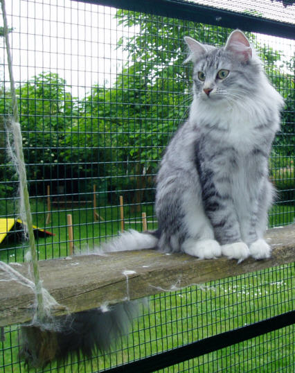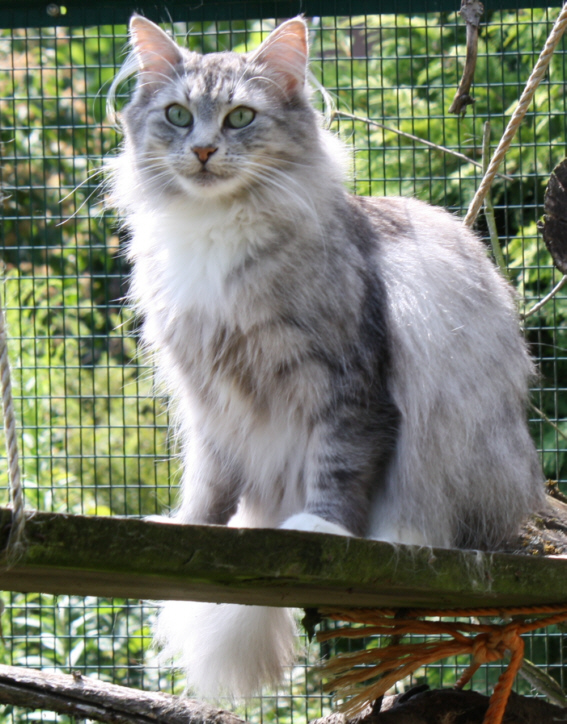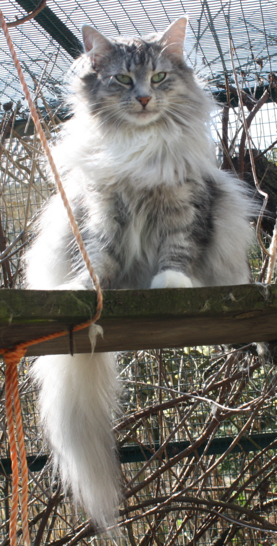 Miss Elli, wie wir Elaquendi nennen, war ganz in unserer Nähe geblieben und sollte die kleine cattery "vom Sternentempel" verstärken! Elli hatte auch eine Norweger-Freundin zum spielen vorgefunden....aber "angeblich" wollte die damals einjährige Katzendame keine Spielgefährtin und soll sogar recht aggressiv mit unserem Katzenkind umgegangen sein!