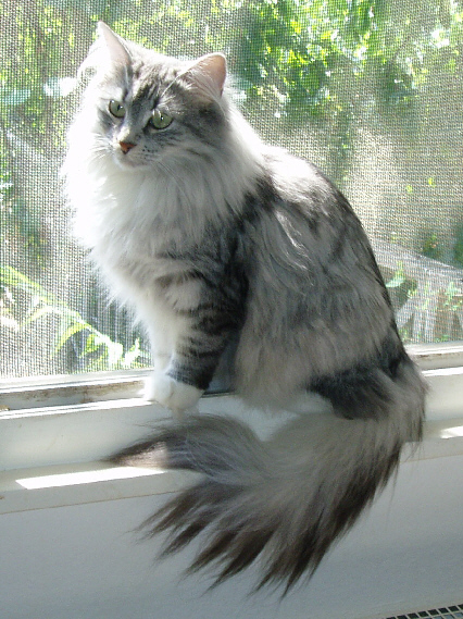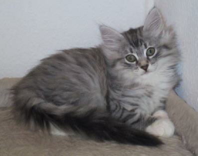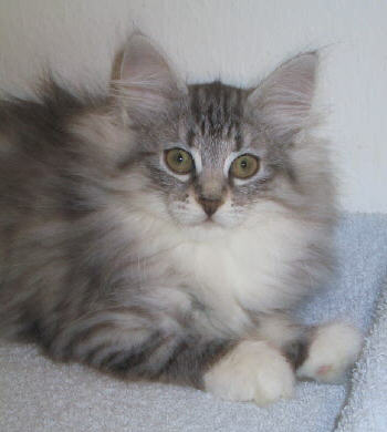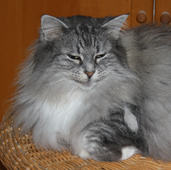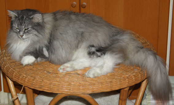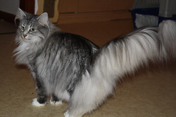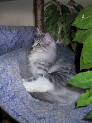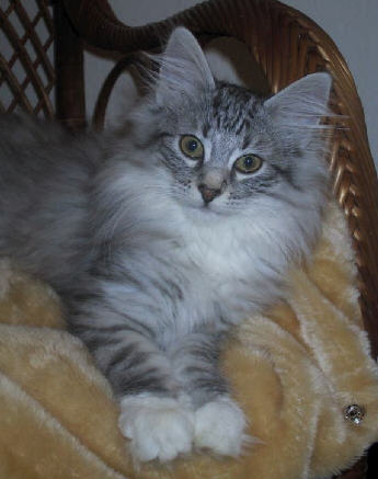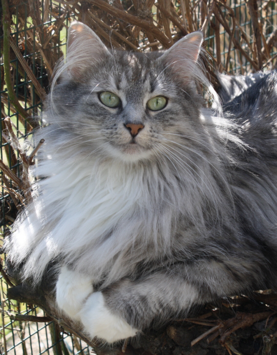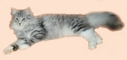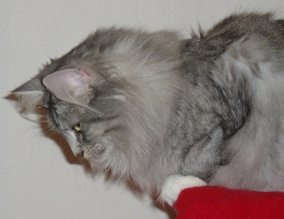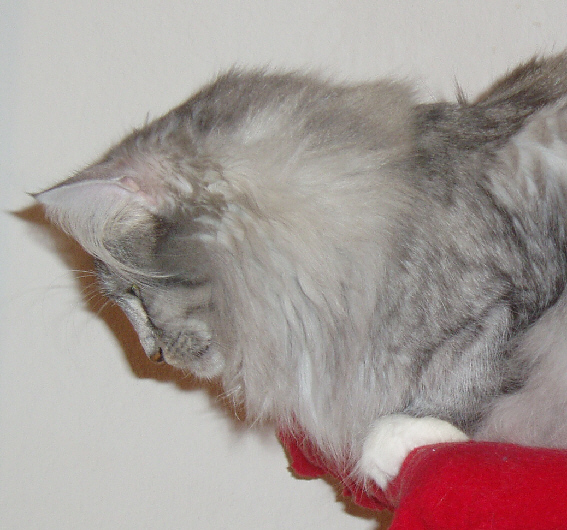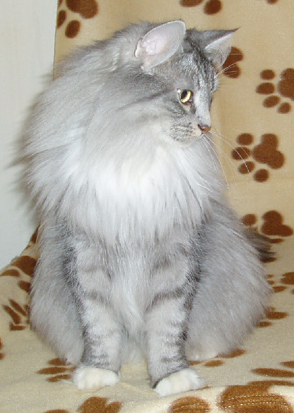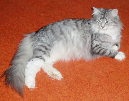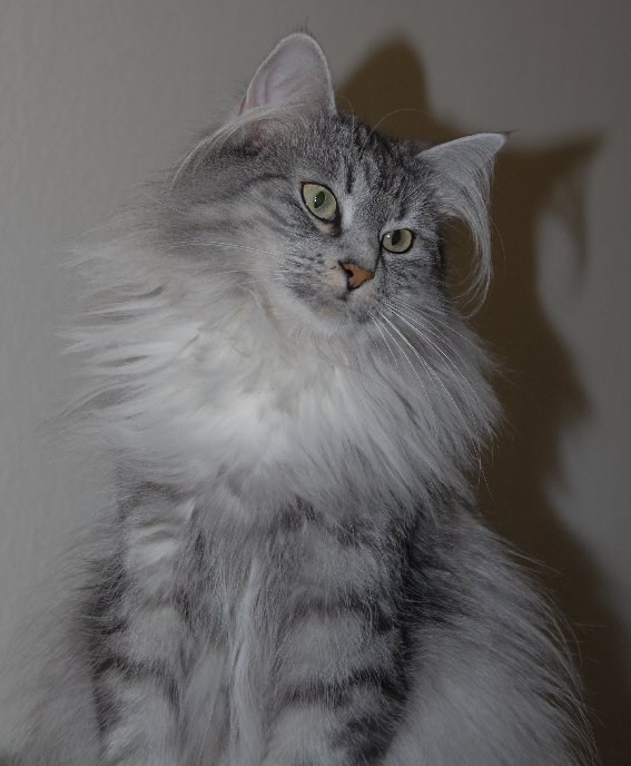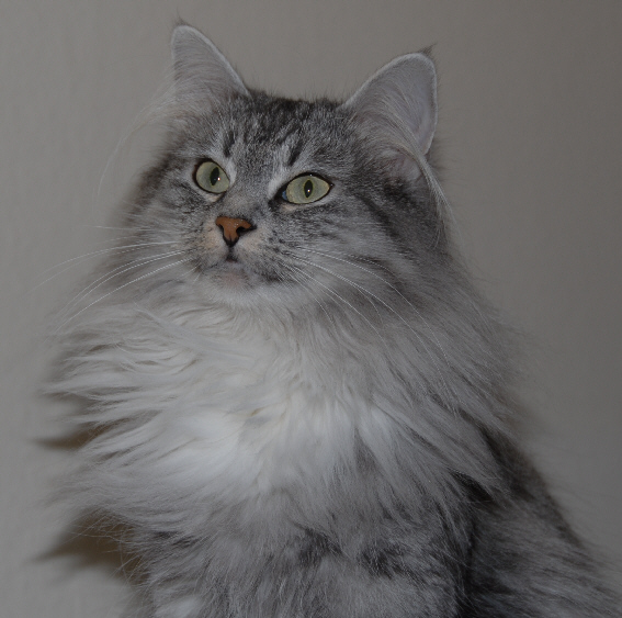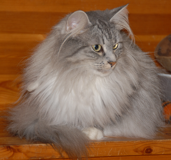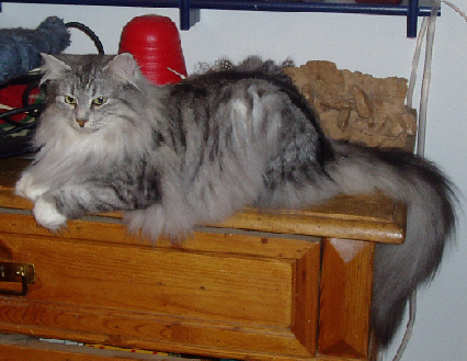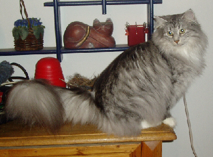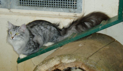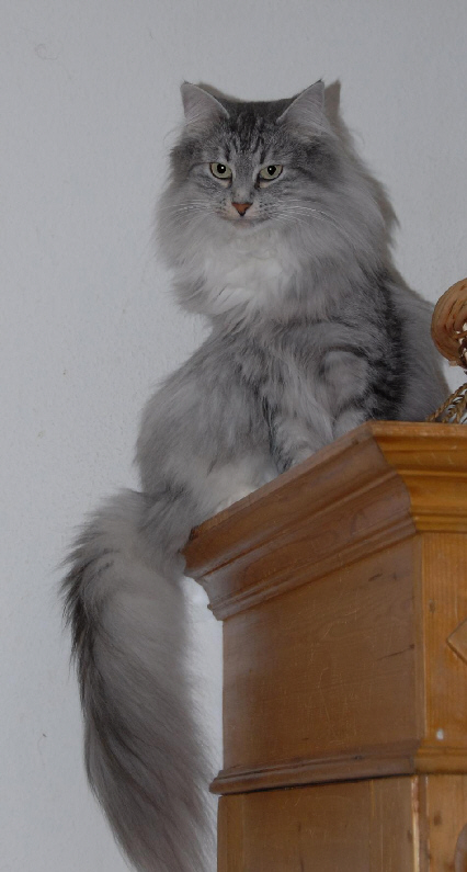 Elli ist eine sehr anhängliche und verschmuste Katzendame und im Winter 2005 hatte sie bei uns ihren 1.Wurf. Neben ihrem sanften Wesen weist sie sehr typvolle Eigenschaften auf. Ihr Körperbau ist sehr harmonisch und ausgewogen, wobei sie eigentlich einen viel zu langen und sehr buschigen Schwanz hat :-) Ihr Profil ist absolut gerade "ohne Fehl & Tadel" und sie hat ein sehr kräftiges Kinn.