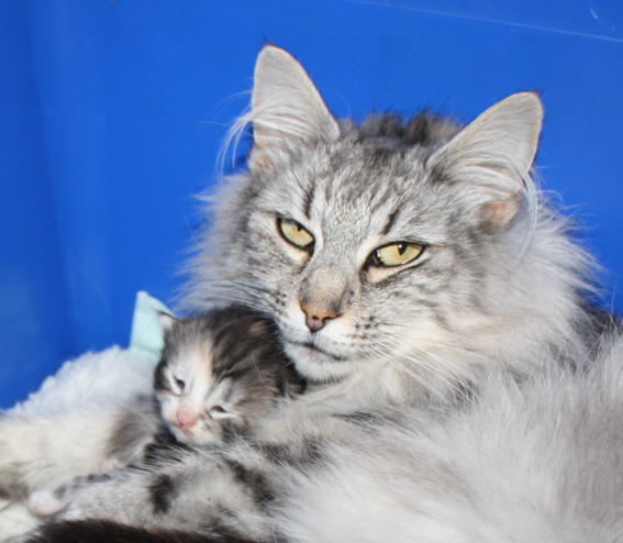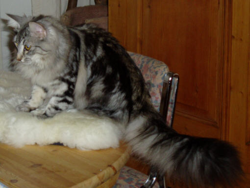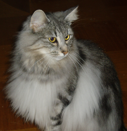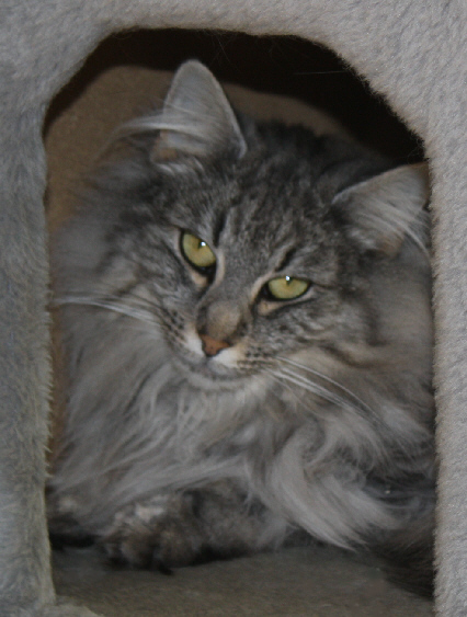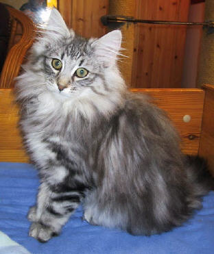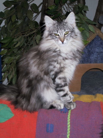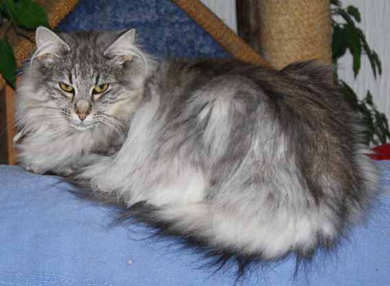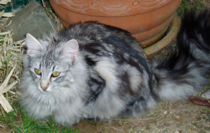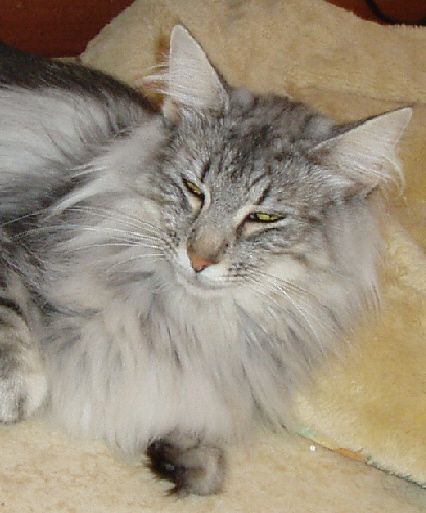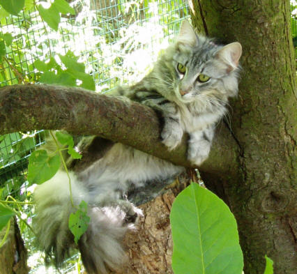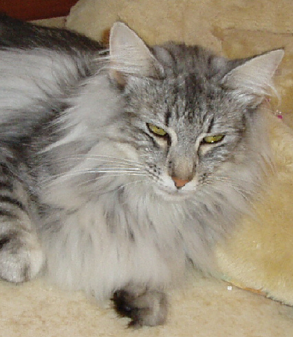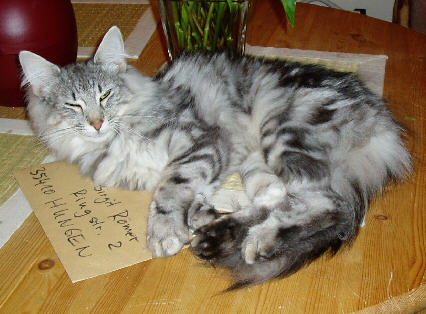 finden. Als Katzenbesitzer kommt man da ins grübeln und forscht nach..... Helevorn hatte eine leicht verdickte Backe und der Termin beim Tierarzt war sofort gemacht. Ultraschall & Röntgen brachten Gewissheit: Helevorn hatte einen Knochentumor am linken Wangenknochen und sicher auch schon starke Schmerzen. Ich beschloss sie nicht mehr aus der Narkose wach werden zu lassen. Es tat mir unendlich leid für diese liebe, und unkomplizierte Katze. Sie hatte nie Streit.... sie lebte in harmonischer Symbiose mit ihrer Katzenfamilie. Menschen mochte sie nicht wirklich, gern' außer sie brachten ein Futtertellerchen. Helevorn war eine sehr liebevolle und fürsorgliche Katzenmutter die in 3 Würfen 11 schöne und liebe Katzenkinder problemlos aufzog und wir verdanken ihr ihre schöne Tochter Lilalu, Enkelin Skrollan und Urenkel Rapunzel & Demeter.....ect. .... R.I.P. meine Schöne !