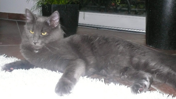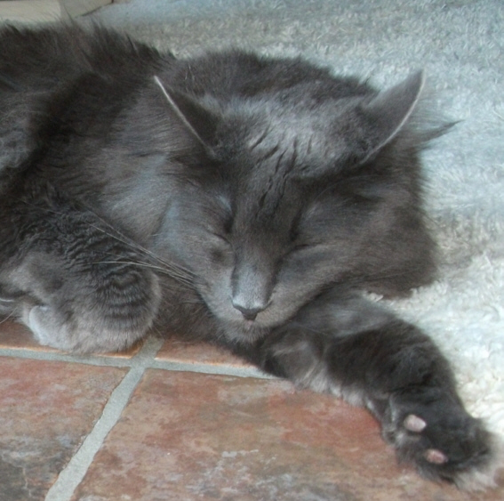 Es stört ihn überhaupt nicht mitten im Zimmer auf dem Fußboden zu dösen, auch