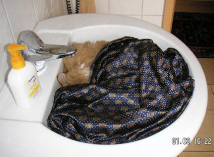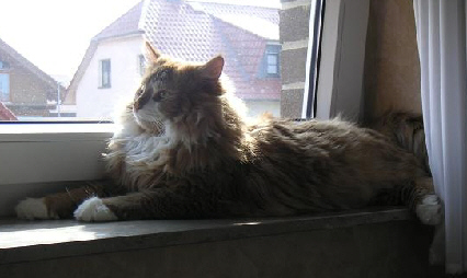 aber nun nutzt er jede Gelegenheit und schnurrt sich jedem ins