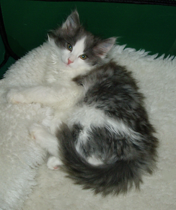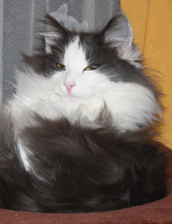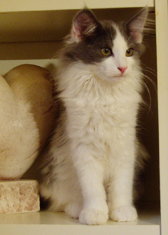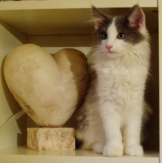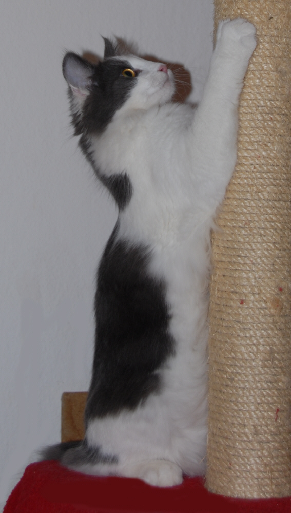 Als der Wurf von Lilalu mit Skrollan zur Welt kam, stand gar nicht zur Debatte, dass ein Kätzchen bleiben soll, aber irgendwie fand sich nicht so der passende Interessent. "Zum Glück" muss ich heute sagen, denn "Skrolli" ist ausgesprochen typvoll und für ein Mädchen in ihrem Alter sehr groß und kräftig. Über ihre Entwicklung bin ich sehr zufrieden und ihre Kitten mit Yarakhti sind wunderschön :-))) Skrollan ist sehr gesprächig mit leiser Stimme und mittlerweile hat sie "ihren Platz" in unserem Bett gefunden ...Abend für Abend....und schnurrt uns in den Schlaf.